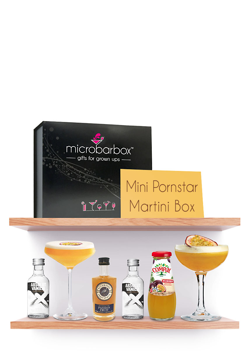 The Classic Pornstar Martini Gift Set features two vanilla vodkas, passion fruit liqueur and a sweet passion fruit nectar.